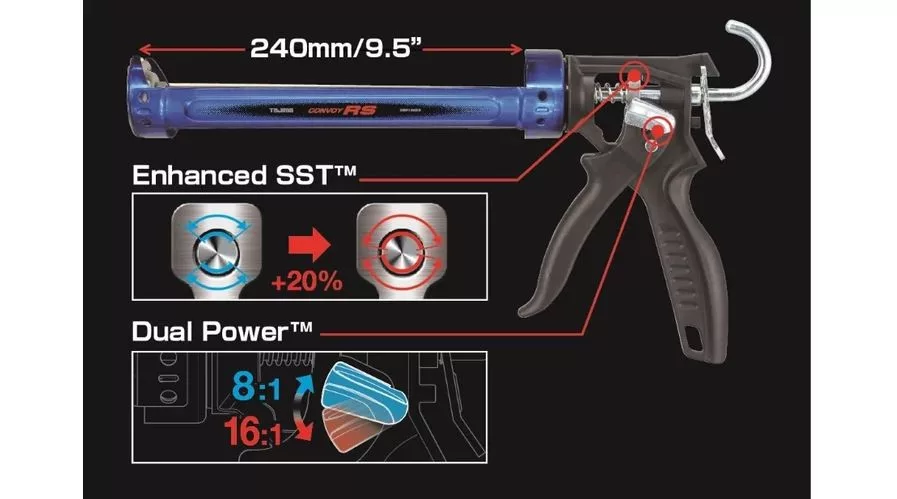 - Különféle viszkozitású anyagokhoz, átkapcsolható kétféle tolóerővel (1:8 vagy 1:16).