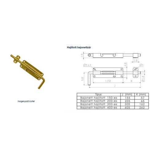 Tolózár 150mm BAJONETT Kapu - MAGYAR hajlított keskeny talplemezzel