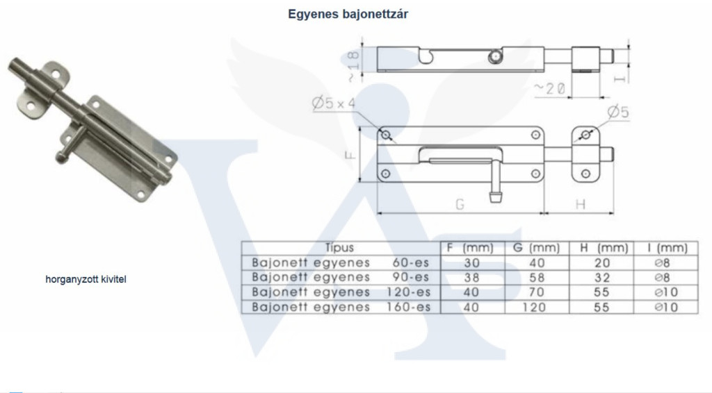 Tolózár 160mm BAJONETT Horganyzott - MAGYAR
