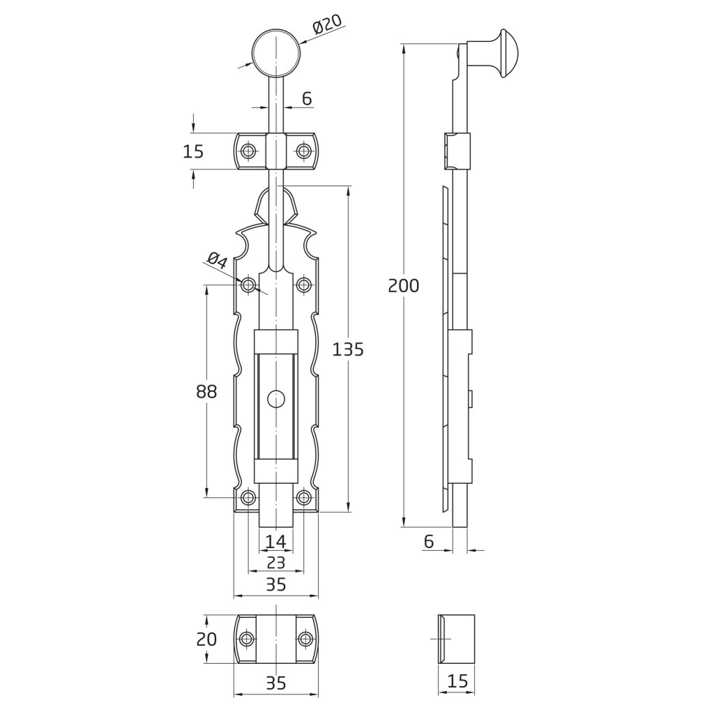 Tolózár 200mm BAJONETT Díszes SPANYOL N°6109 /200x 35mm AMIG Mod.411 Fekete