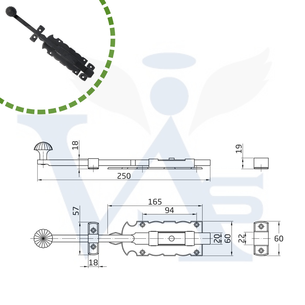 Tolózár 250mm BAJONETT Díszes SPANYOL N°6103 /250x 60mm AMIG Mod.410 Fekete