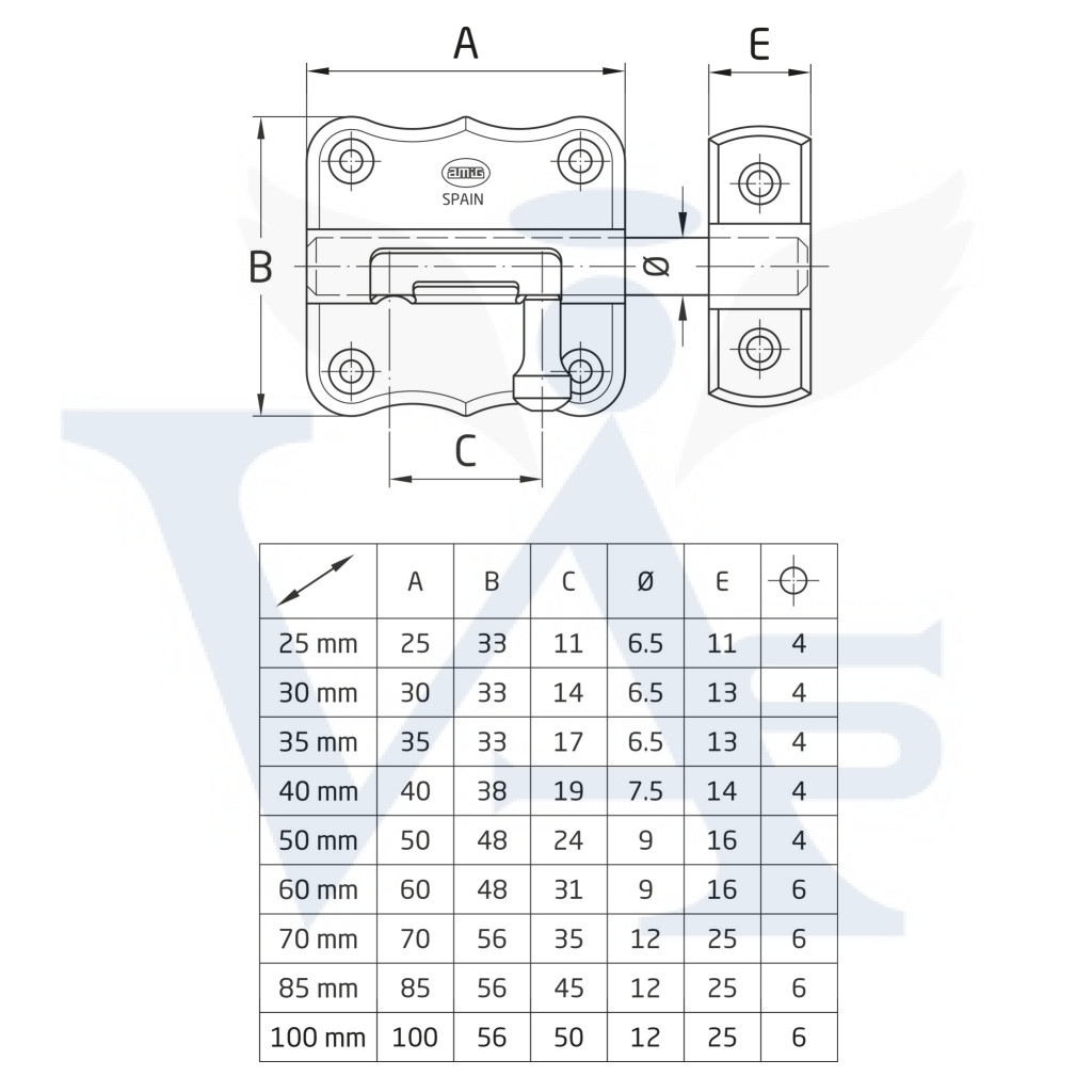 Tolózár 60mm BAJONETT Díszes SPANYOL N°242 / 60x 48mm AMIG Mod.384 Horganyzott