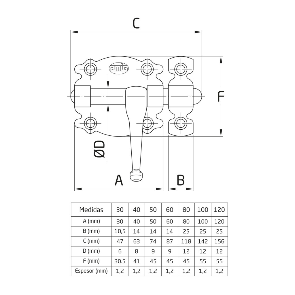 Tolózár 60mm BAJONETT Díszes SPANYOL N°6119/ 60x 87 AMIG Mod.484 Festett FEKETE