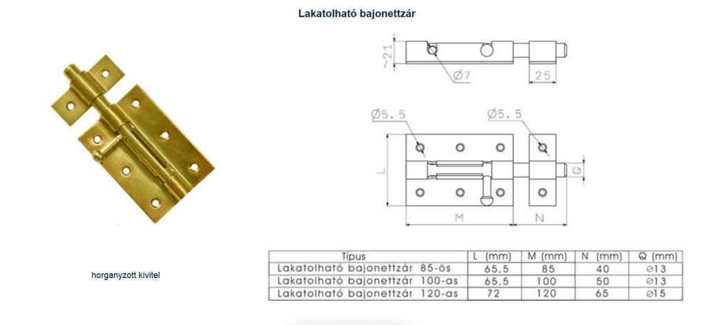 Tolózár 85mm BAJONETT Lakatolható MAGYAR