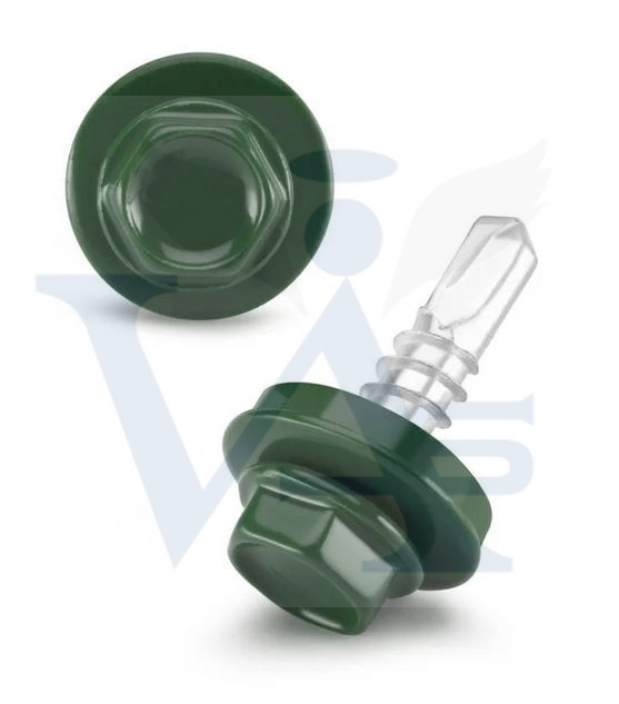 Lemezcsavar RAL 4,8x 19,0mm FŰZŐ EPDM RAL6009 - ÖNFÚRÓ-FÉM HATL. DIN7504/K (fenyőzöld)