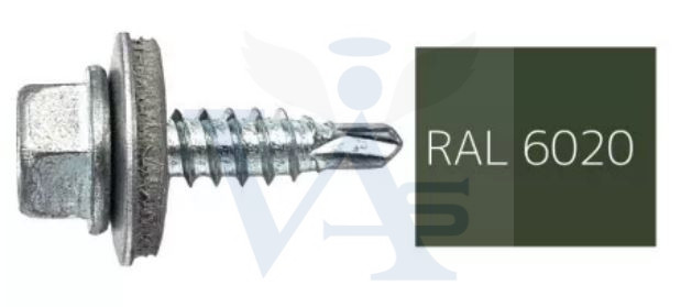 Lemezcsavar RAL 4,8x 19,0mm FŰZŐ EPDM RAL6020 - ÖNFÚRÓ-FÉM HATL. DiN7504/K (krómzöld)