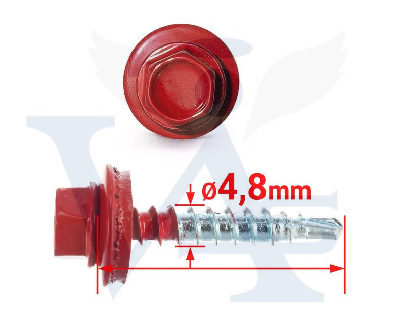 Lemezcsavar RAL 4,8x 35,0mm EPDM RAL3000 - ÖNFÚRÓ-FA HATL. DIN7504/K (tűzvörös)