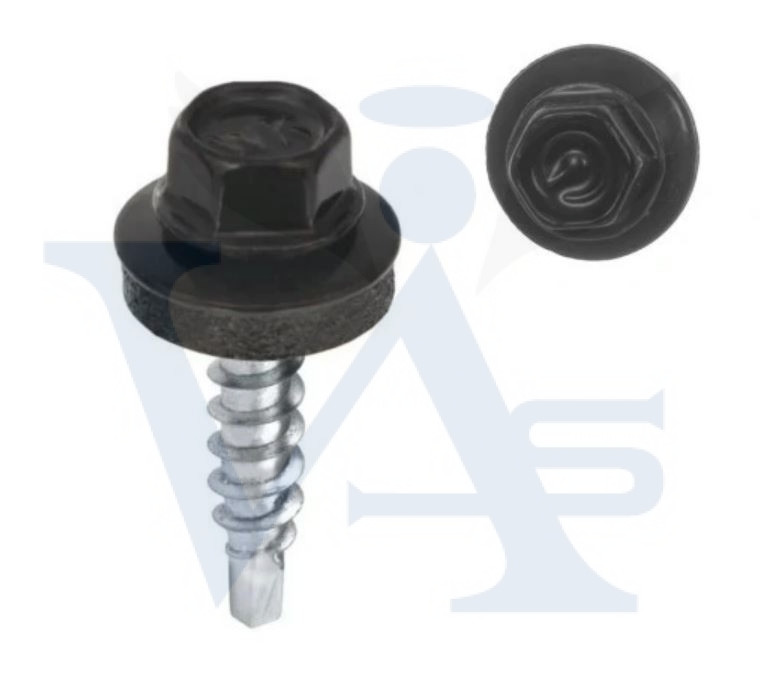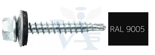 Lemezcsavar RAL 4,8x 35,0mm EPDM RAL9005 - ÖNFÚRÓ-FA HATL. DIN7504/K MÉLYFEKETE (redukált hegyű)