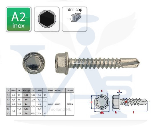 Lemezcsavar-A2-ÖNFÚRÓ-HLF 6,3x 25,0 DIN7504/K - Hatlap-fejű INOX ROZSDAMENTES