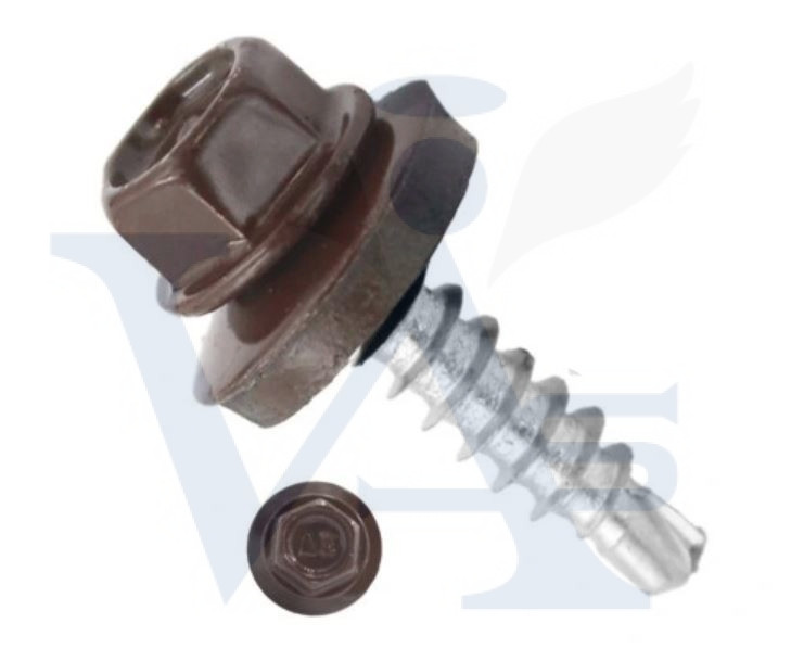 Lemezcsavar RAL 4,8x 19,0mm EPDM RAL8017 - ÖNFÚRÓ-FÉM HATL. DIN7504/K (csokoládébarna)