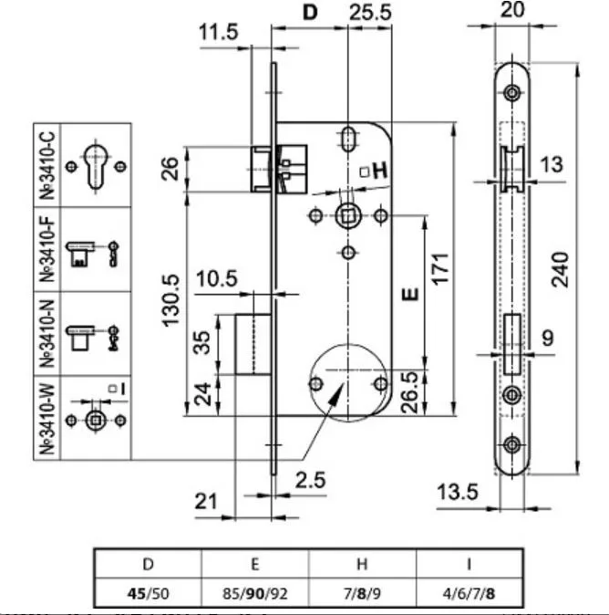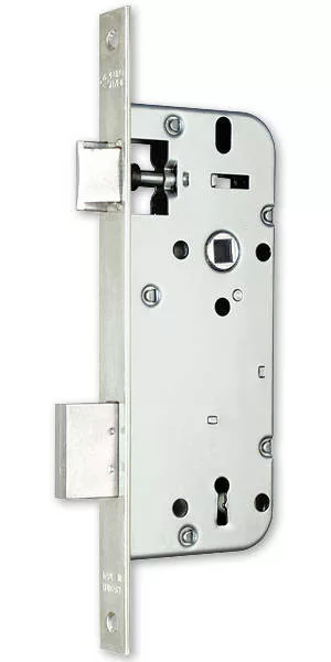 Fogazott kulcsos bevésőzár. Beltéri fa ajtókhoz ajánlott.Kilincsek, pajzsok széles körben használhatók (felerősítő lyukak DIN szerint).Univerzális csapdájú, a csapda átfordítható az ajtó nyitásirányának megfelelően.